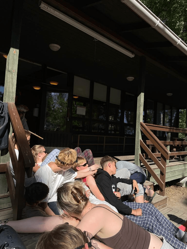 Dagen började med en andakt ute på klipporna då vuxenledarna höll teater. Efter det hade vi Thinkshow då Linus och Shani blev intervjuade om bland annat vad som händer efter döden. Sedan hade vi fadderkvart då vi skrev bucket-list om vad vi vill hinna göra före vi dör, exempelvis resa runt jorden och att gifta sig. Vi åt kebab (igen). I dag hade vi också den legendariska Trötta Ledarnas Ö (TLÖ) tävlingen som går ut på att lösa uppgifter i tid och därmed få en nyckel. Med nycklarna får man sedan bokstäver som hjälper lagen att lösa lösenordet. Den här gruppen gjorde i dag en temavideo för morgondagens Thinkshow om ansvar som var jättekiva att göra! Efter att vi har skrivit färdigt det här ska vi gå på kvällste.